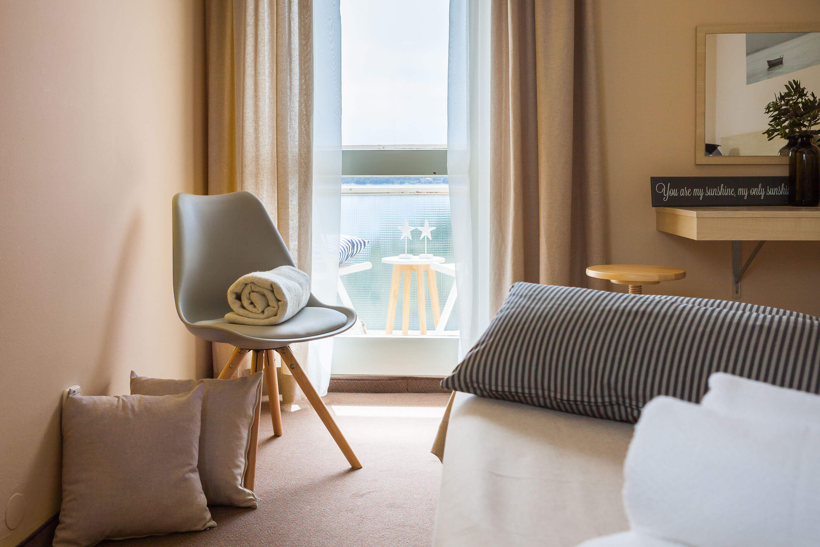 Questa tipologia di camera, oltre ai comodi letti matrimoniale aventi materassi moderni, dispone anche di divano letto per una persona. Le camere hanno il balcone con tavolo e sedie, bagno con doccia, cassetta di sicurezza, minibar, armadio, Tv Sat LCD, scrivania con sedia, aria condizionata e hanno l’accesso gratuito alla connessione internet senza cavo.